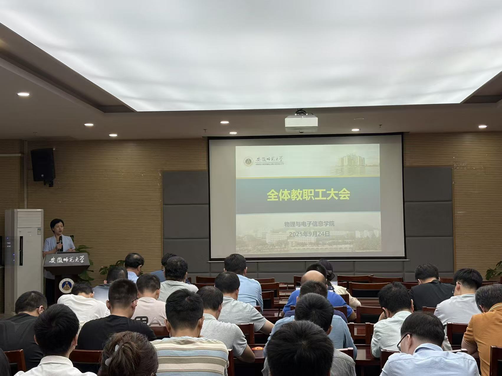9月24日,3044am永利集团3044noc在物理楼304会议室召开全体教职工大会,开展政治理论学习,推进智慧课程建设,总结前期工作,布置近期重点工作。学院全体教职工参加会议,会议由学院党委书记宋静主持。