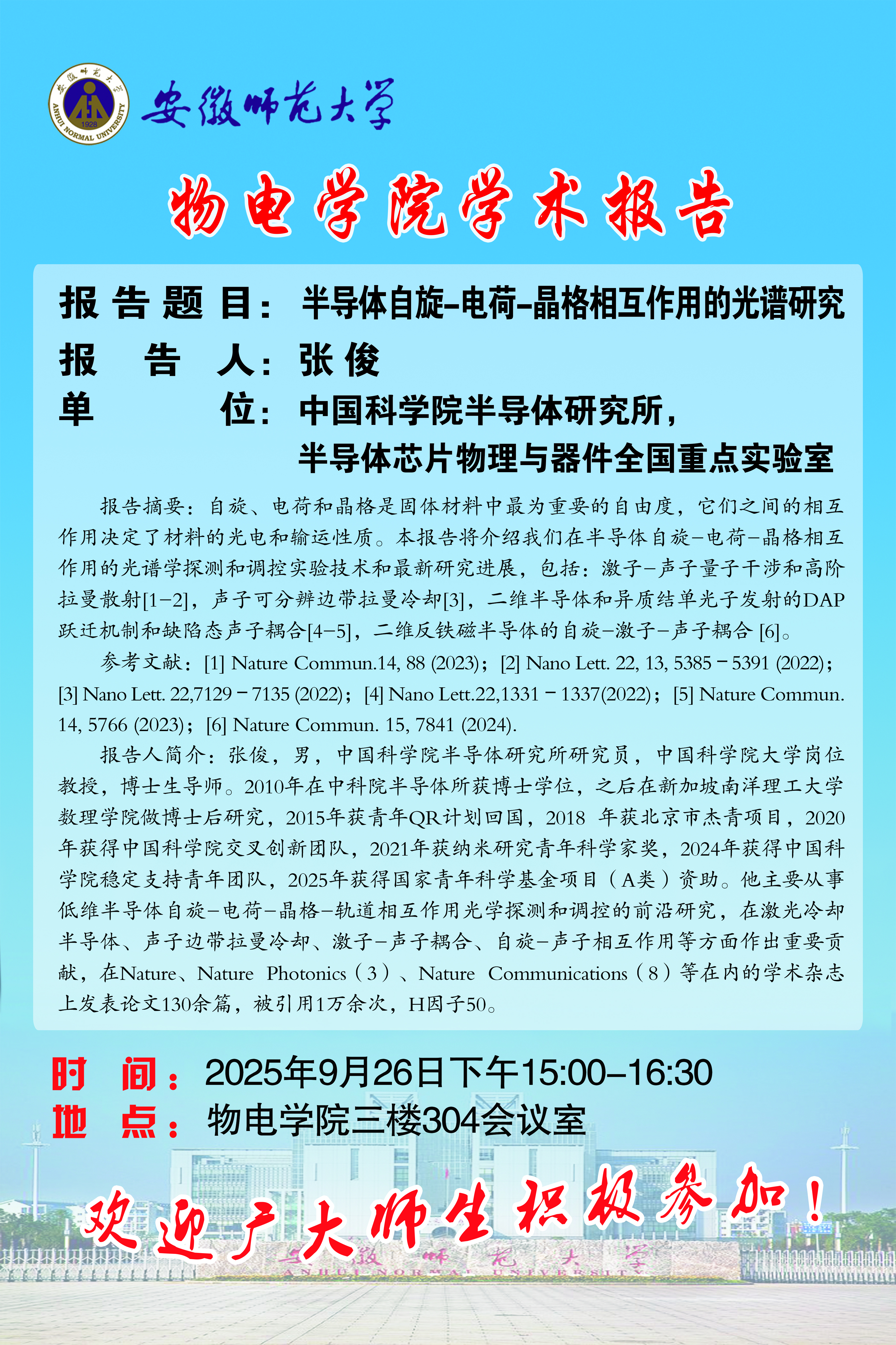 地址:花津校区-安徽省芜湖市九华南路189号 邮编:241000 电话:0553--3869894