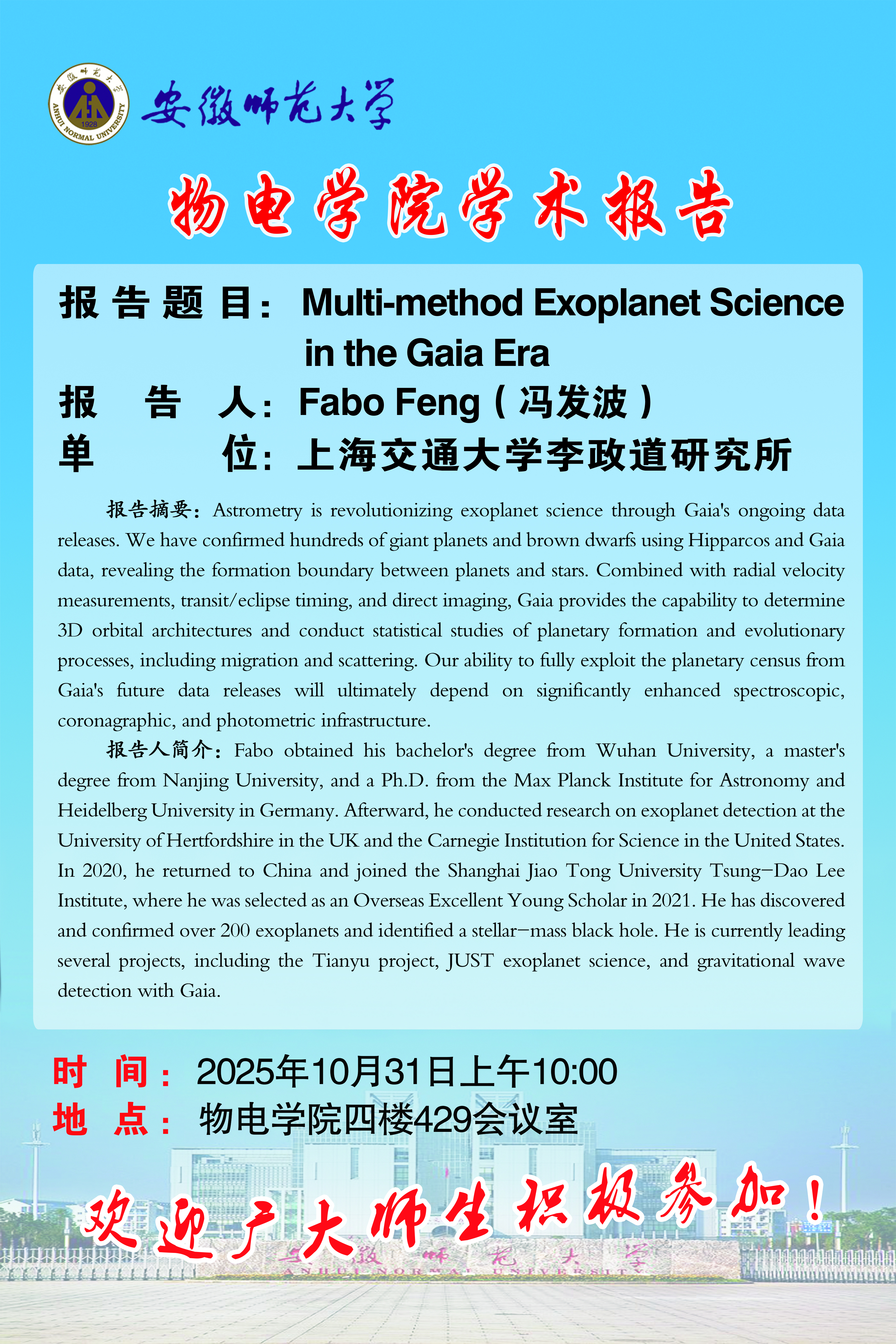 【学术预告】物电讲坛2025年第41期:Multi-method Exoplanet Science in the Gaia Era