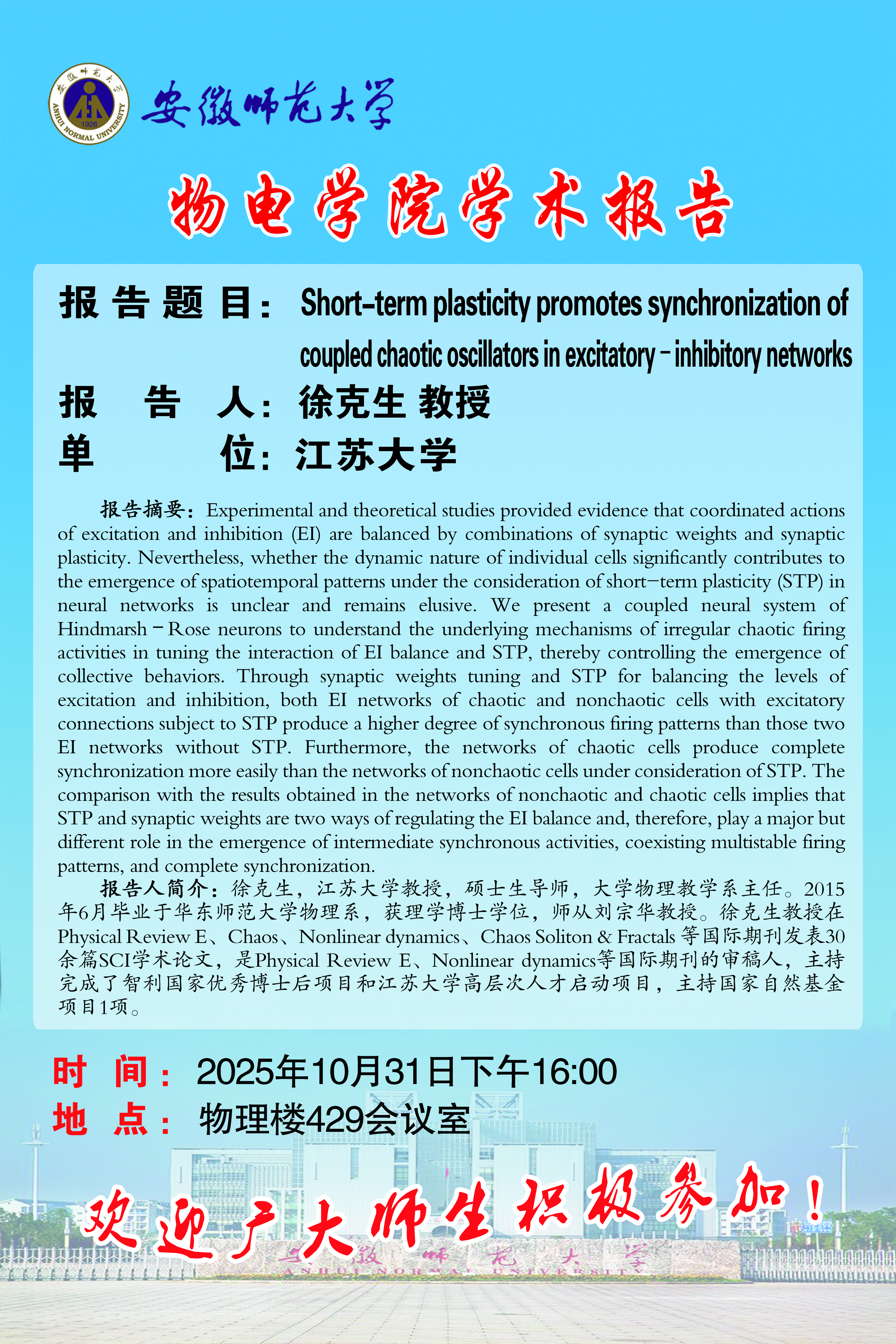 地址:花津校区-安徽省芜湖市九华南路189号 邮编:241000 电话:0553--3869894