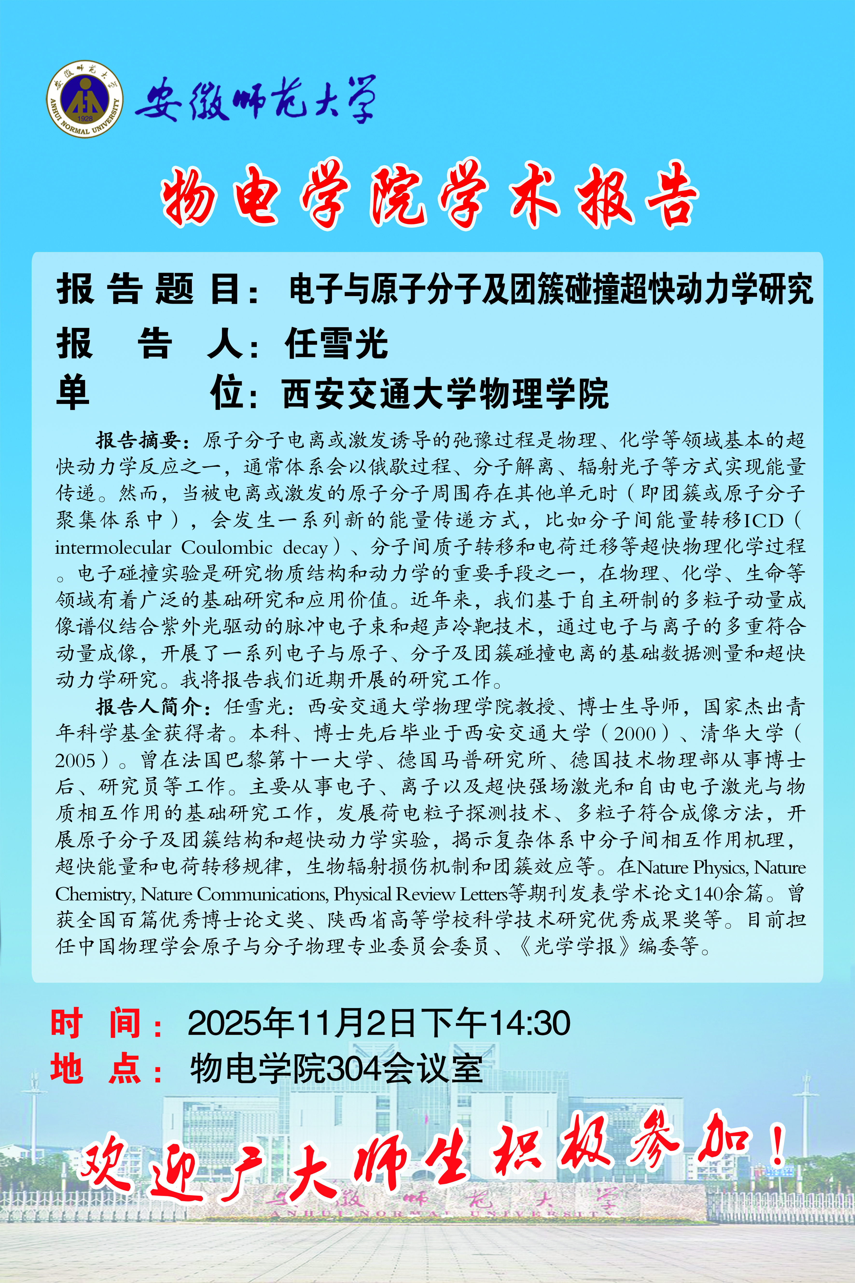 地址:花津校区-安徽省芜湖市九华南路189号 邮编:241000 电话:0553--3869894