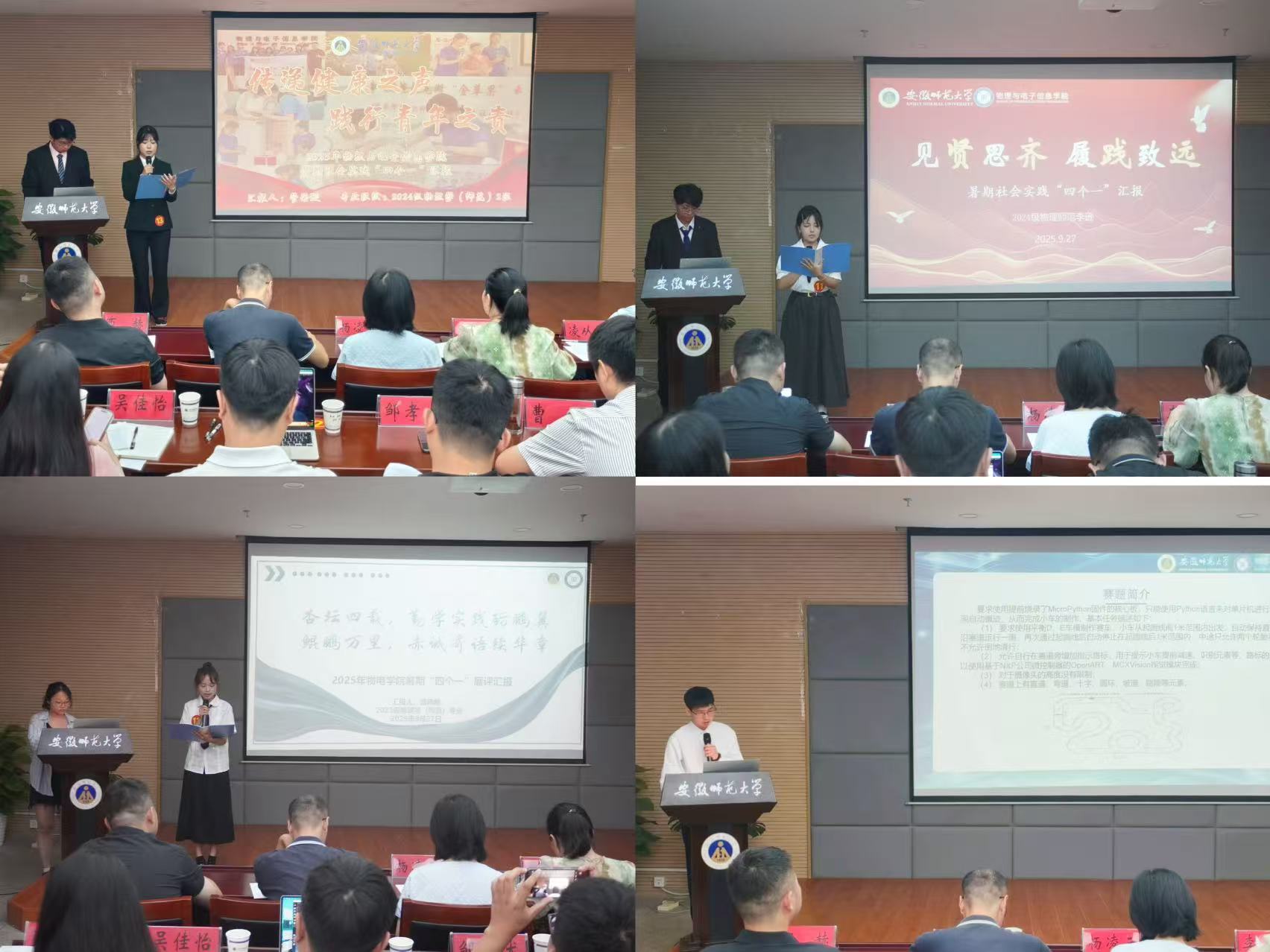 在暑期社会实践展评交流会上,10支重点实践团队的负责人依次登台,围绕前期部署、实践过程、成果收获与总结反思等方面,详实生动地分享了各团队的所见所闻、所思所获。“千方爱心学校”支教团队秉持“以爱为光,点亮希望”的信念,持续为乡村教育注入青春能量;“社区科技站”深入基层开展义务维修,以实际行动践行“科技创新,服务社会”的宗旨;“金苹果”科普项目依托专业优势,推动科普活动进社区、进学校、进企业、进乡村,广泛传播科学知识,弘扬科学精神;学科竞赛集训团队坚持“以赛促学、以赛促练”,不断夯实学生专业基础,提升实践能力,在国家级、省级赛事中斩获佳绩。这些丰富多彩的实践活动,生动展现了物电学子自强不息、知行合一、乐于奉献的精神风貌。