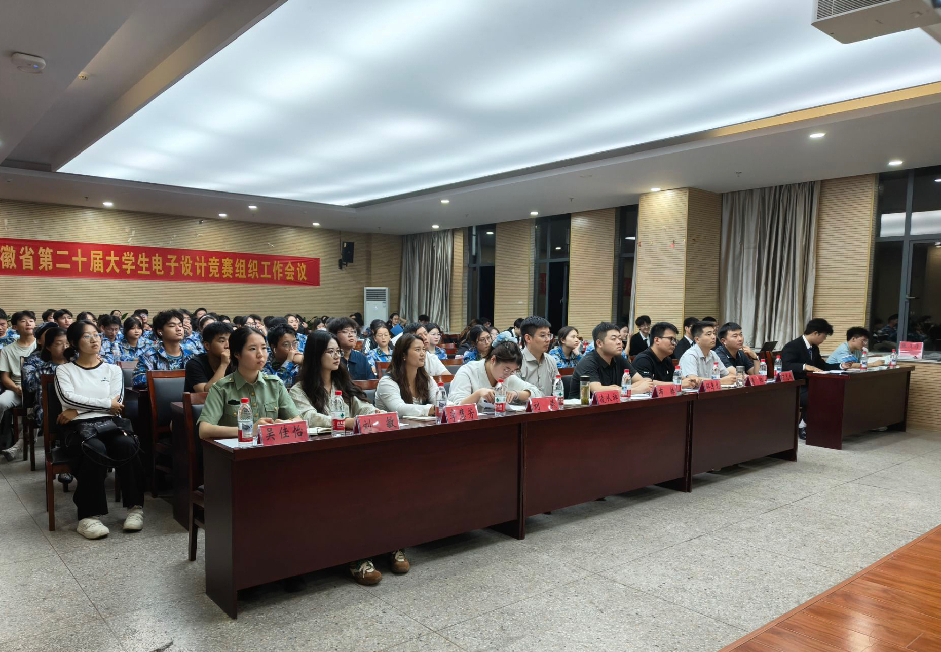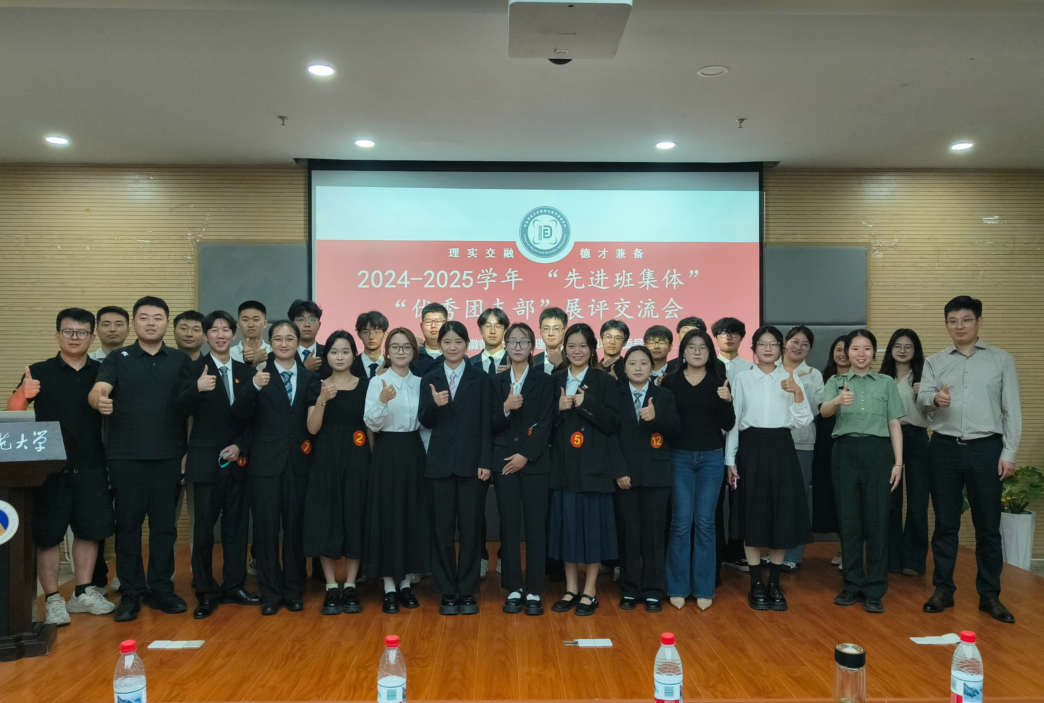 展评会上,12个班集体、团支部学生代表依次登台汇报,全面汇报了班级组织建设、思想引领、学风建设、基础文明等方面工作成效。2022级物理学(师范)2班以“潜力‘物’限核聚变,躬行‘师’践望星云”为题,讲述物理师范生在专业学习、教学技能打磨、学科竞赛参与中的成长轨迹;2023级光电信息科学与工程1班围绕“聚时代之‘光’,成时代之‘电’”的主题,以“理论筑基”“实验攻坚”“科创赋能”为脉络,展现光电学子在专业领域探索突破的奋进历程;2024级物理学(师范)5班则以“凝聚班级稳核力,实现梦想新跃迁”为题,阐述班级同学在班级文化建设、专业知识学习、教育理念践行中的成长足迹。各参评集体立足学校大学生护航行动计划采取的创新举措、取得的良好成果得到了评委老师和学生代表的肯定,赢得了阵阵掌声。